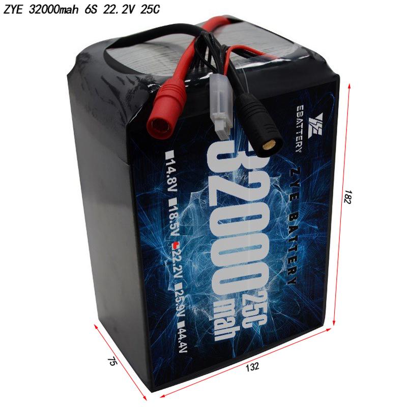 | 32000mah | 6s1p (22.2V) | 4000g (± 10g) | 182*75*132mm | 710.4wh | 25C 800A | 50c 1600a |