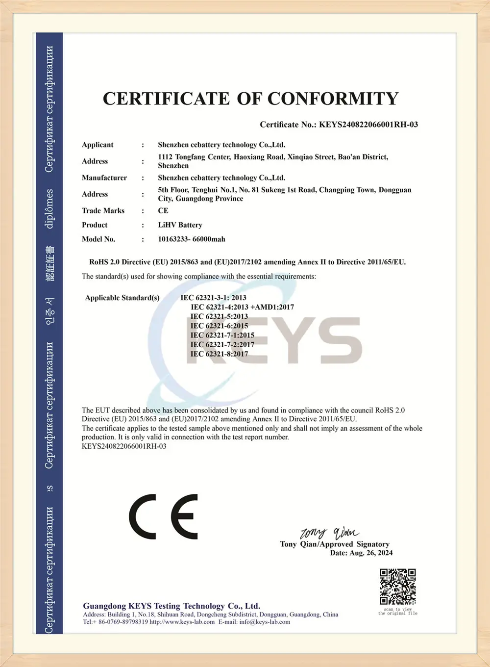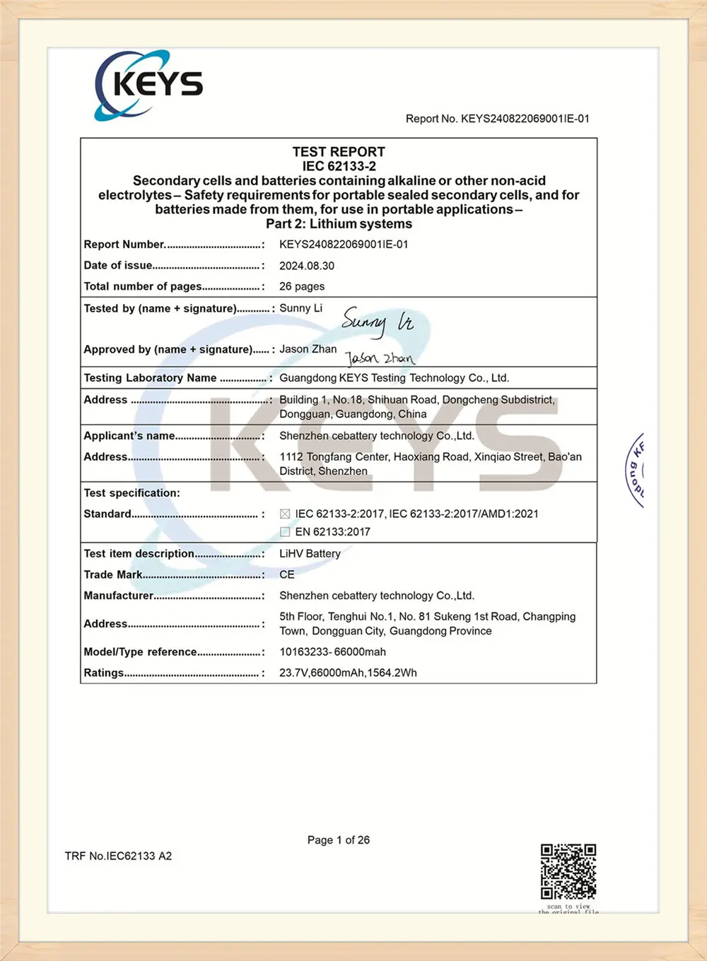 ZyebatteyForfølger alltid forretningsfilosofien om "kvalitet først, serviceorientert, integritet og holder løfter". For å være den beste og mest stabile batterileverandøren, tilbyr vi oppladbar batteriteknologi av høy kvalitet, og Zyebattey har bestått mange autoritetssertifiseringer, for eksempel ISO9001: 2015, UL, CE, FCC, FN, 3C etc.